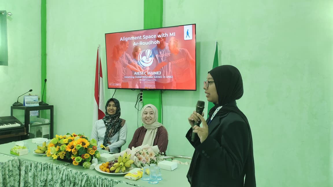 Dalam kegiatan bertajuk *“Alignment Space with MI Ar-Roudhoh”*, Sena Atanak diperkenalkan secara resmi kepada jajaran guru dan pihak sekolah. Ia merupakan member AIESEC dari Turki yang akan berkontribusi dalam program pengajaran selama 6 bulan ke depan.