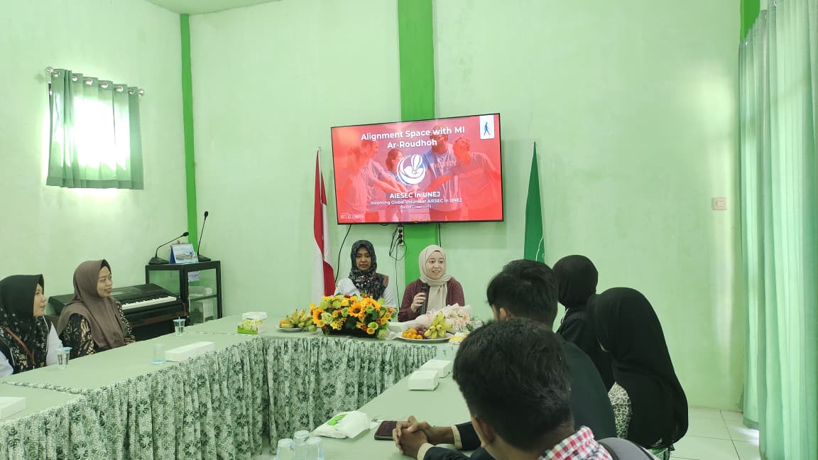 Dalam kegiatan bertajuk *“Alignment Space with MI Ar-Roudhoh”*, Sena Atanak diperkenalkan secara resmi kepada jajaran guru dan pihak sekolah. Ia merupakan member AIESEC dari Turki yang akan berkontribusi dalam program pengajaran selama 6 bulan ke depan.