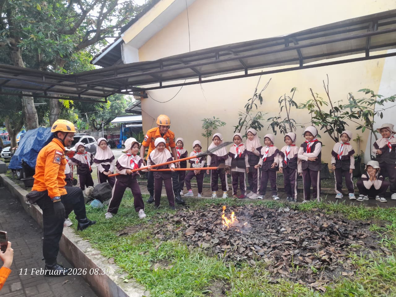 Salah satu momen yang paling menarik adalah simulasi pemadaman kebakaran. Dengan pengawasan langsung dari petugas, anak-anak diperlihatkan cara memadamkan api kecil secara aman dan terkontrol. Beberapa siswa bahkan berkesempatan mencoba memegang alat pemadam sederhana untuk memadamkan api yang telah disiapkan dalam simulasi. Kegiatan ini melatih keberanian sekaligus mengenalkan pentingnya kewaspadaan sejak dini.